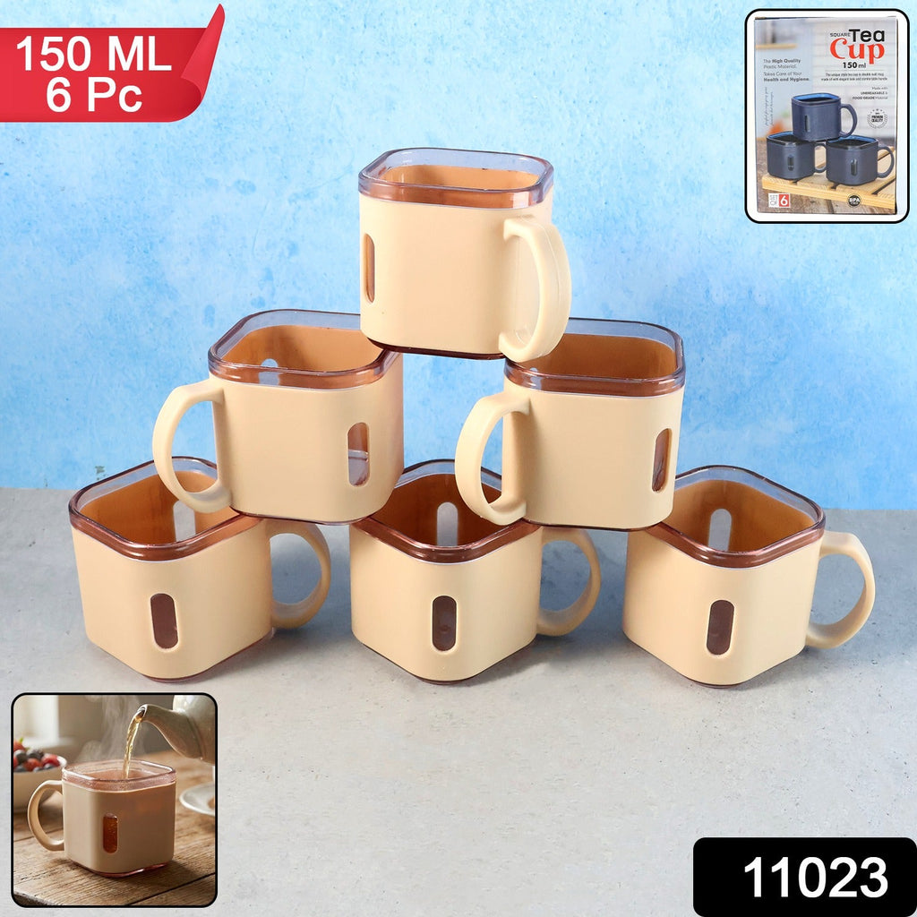 Premium Square Shape Tea Cup Set – 6-Piece Lightweight Unbreakable Cups for Tea, Coffee & Daily Use (150 ml Capacity Each)