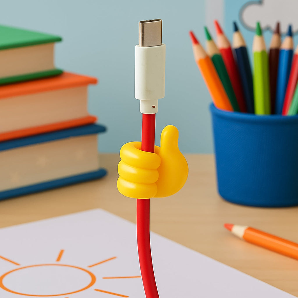 - This cable holder has a fun thumbs-up design that conveniently grips the cord